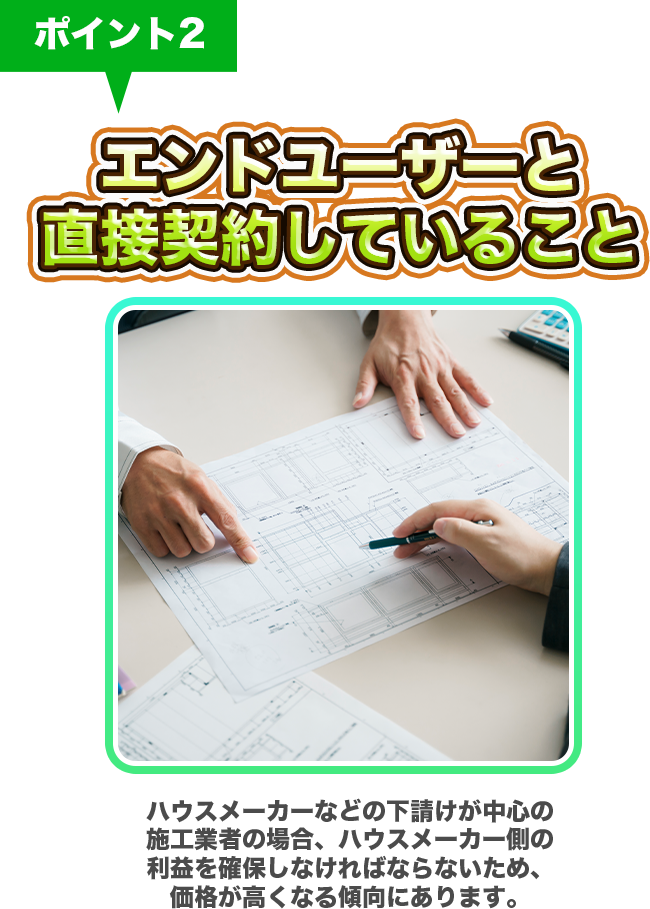 お客様と打ち合わせを行った職人が、そのまま施工を手掛けるため、 ご要望と仕上がりでズレが生じるようなこともございません。 中間マージンなどの余分な費用も発生しませんので、 適正価格で質の良い工事が実現します。