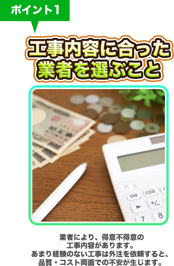 お客様と打ち合わせを行った職人が、そのまま施工を手掛けるため、 ご要望と仕上がりでズレが生じるようなこともございません。 中間マージンなどの余分な費用も発生しませんので、 適正価格で質の良い工事が実現します。